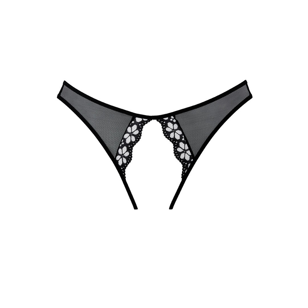 Una mezcla de malla transparente y encaje de flores con adornos picot, hace que este panty con recortes peekaboo en la parte delantera y trasera, deliciosamente travieso.