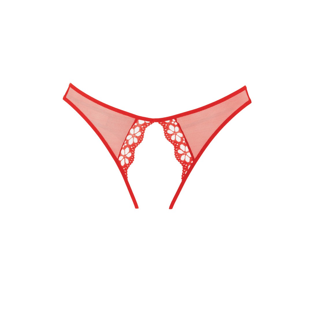Una mezcla de malla transparente y encaje de flores con adornos picot, hace que este panty con recortes peekaboo en la parte delantera y trasera, deliciosamente travieso.