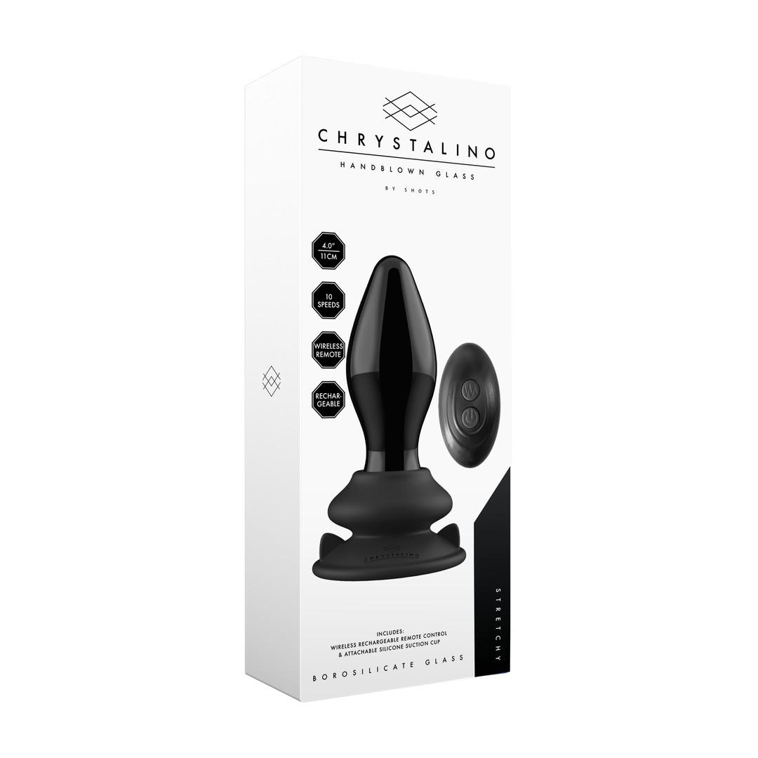 Plug anal de cristal Chrystalino con 10 modos de vibración, base con ventosa y mando a distancia inalámbrico.