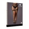 Este liguero está hecho de malla con rayas verticales y bandas que envuelven las piernas de forma sensual. El diseño resalta las curvas y añade un toque provocativo a cualquier conjunto de lencería.