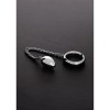 Este juguete combina dos placeres intensos en uno solo: un anillo para el pene macizo y pesado por un lado y un estimulante huevo anal por el otro. El anillo tiene un diámetro interno de 5 cm, mientras que el plug anal tiene un diámetro de 5 cm y una longitud insertable de 6 cm, unidos por una cadena metálica de 19 cm.