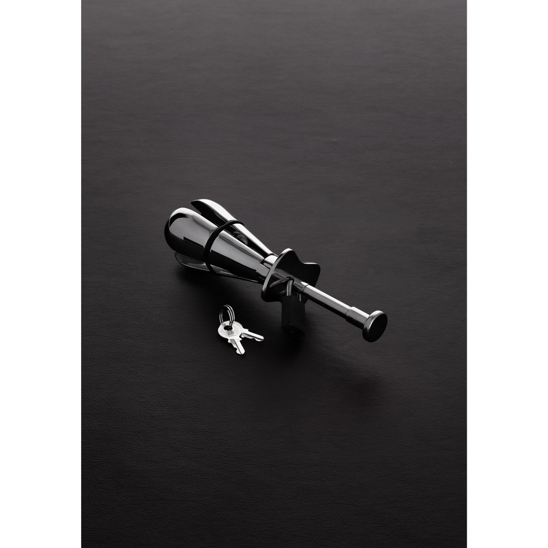 Este plug anal de acero inoxidable con cierre de lujo es un juguete anal de alta calidad, diseñado para proporcionar un placer intenso y alcanzar todos los puntos correctos. Las tres secciones articuladas de acero se abren suavemente en el interior, mientras que el pasador de bloqueo mantiene el plug firmemente en su sitio hasta que decidas liberarlo. El material liso ofrece un peso y un tacto lujosos, creando sensaciones intensas y permitiendo estimulantes juegos con la temperatura. Su diámetro interno varía entre 3,4 cm (cerrado) y 4,8 cm (abierto), con una longitud insertable de 10 cm. Fácil de limpiar.
