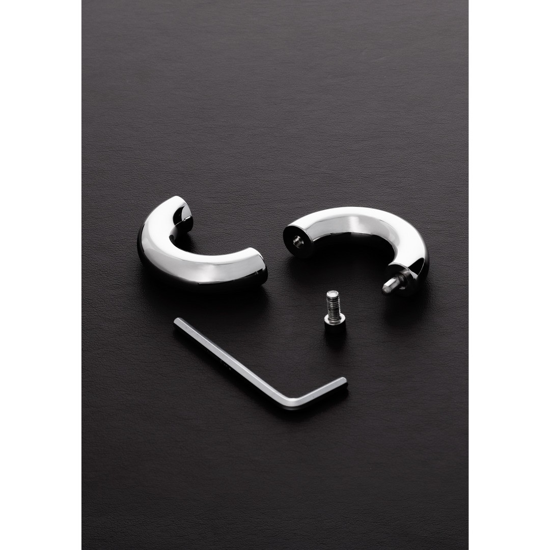 Este anillo extensor para testículos tiene 1,5 cm de ancho, 4,8 cm de diámetro interior y pesa 252 g. Disfruta de los juguetes de la colección Shots Steel.