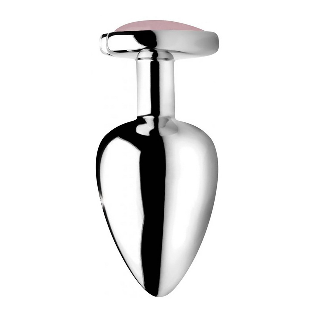 Plug anal metálico con auténtica gema de cuarzo rosa para experiencias románticas, sensoriales e intensamente placenteras.
