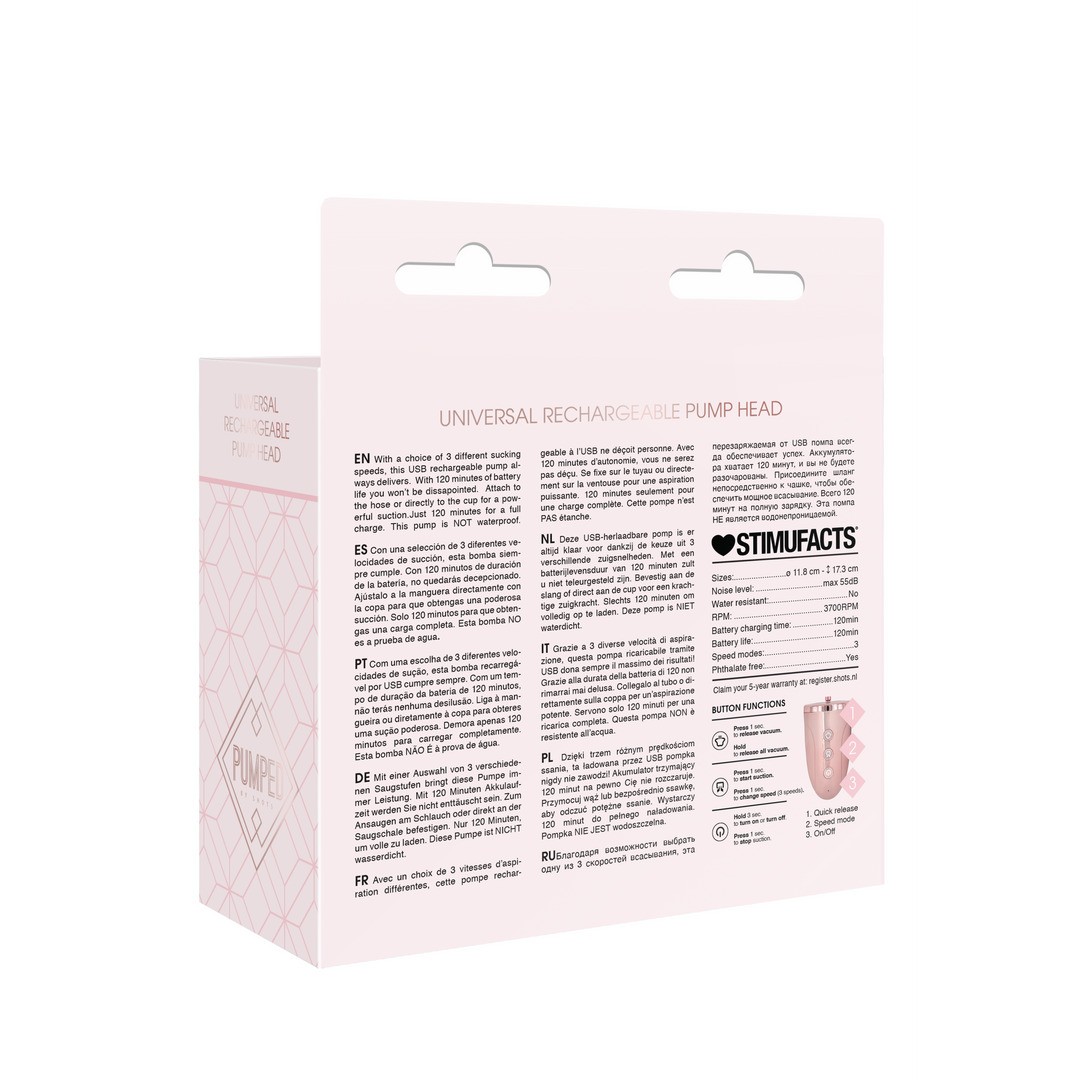 Cabezal de bomba de vacío recargable con 3 niveles de succión y 120 minutos de autonomía para una estimulación intensa.