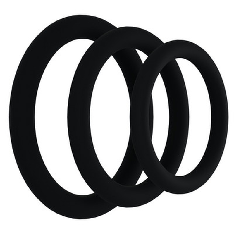 Conjunto de 3 anillos para el pene finos, fabricados en silicona superelástica para prolongar la erección e intensificar el placer.