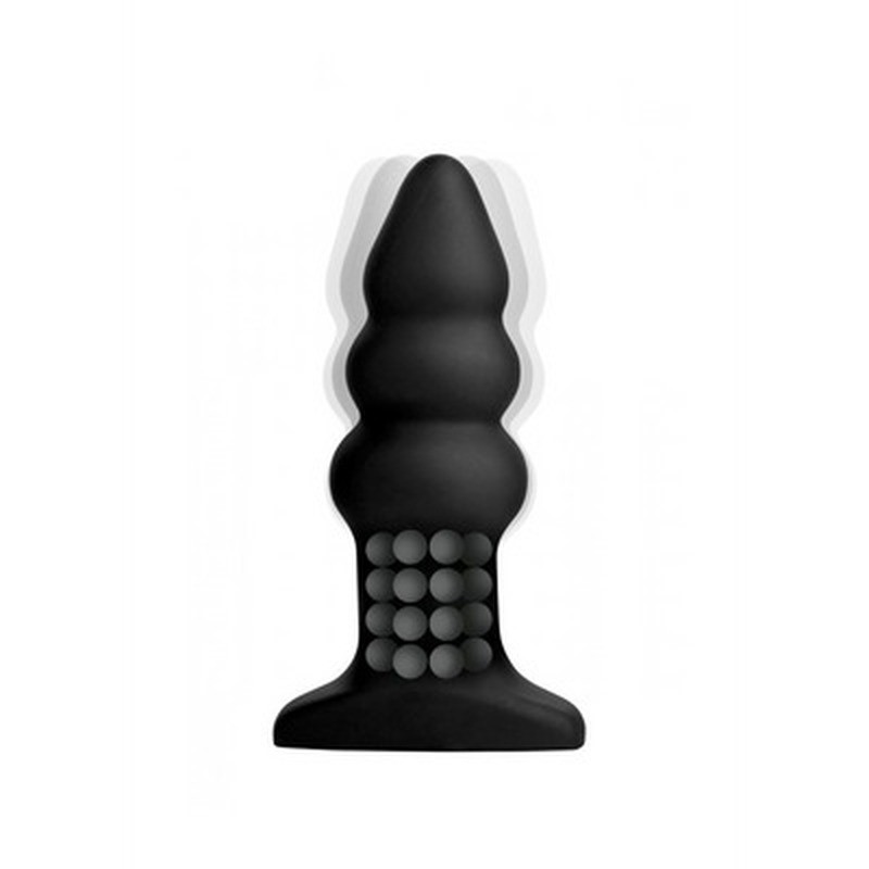Plug anal con bulbos, vibración y perlas giratorias, ideal para un placer creciente y una estimulación intensa con control remoto.