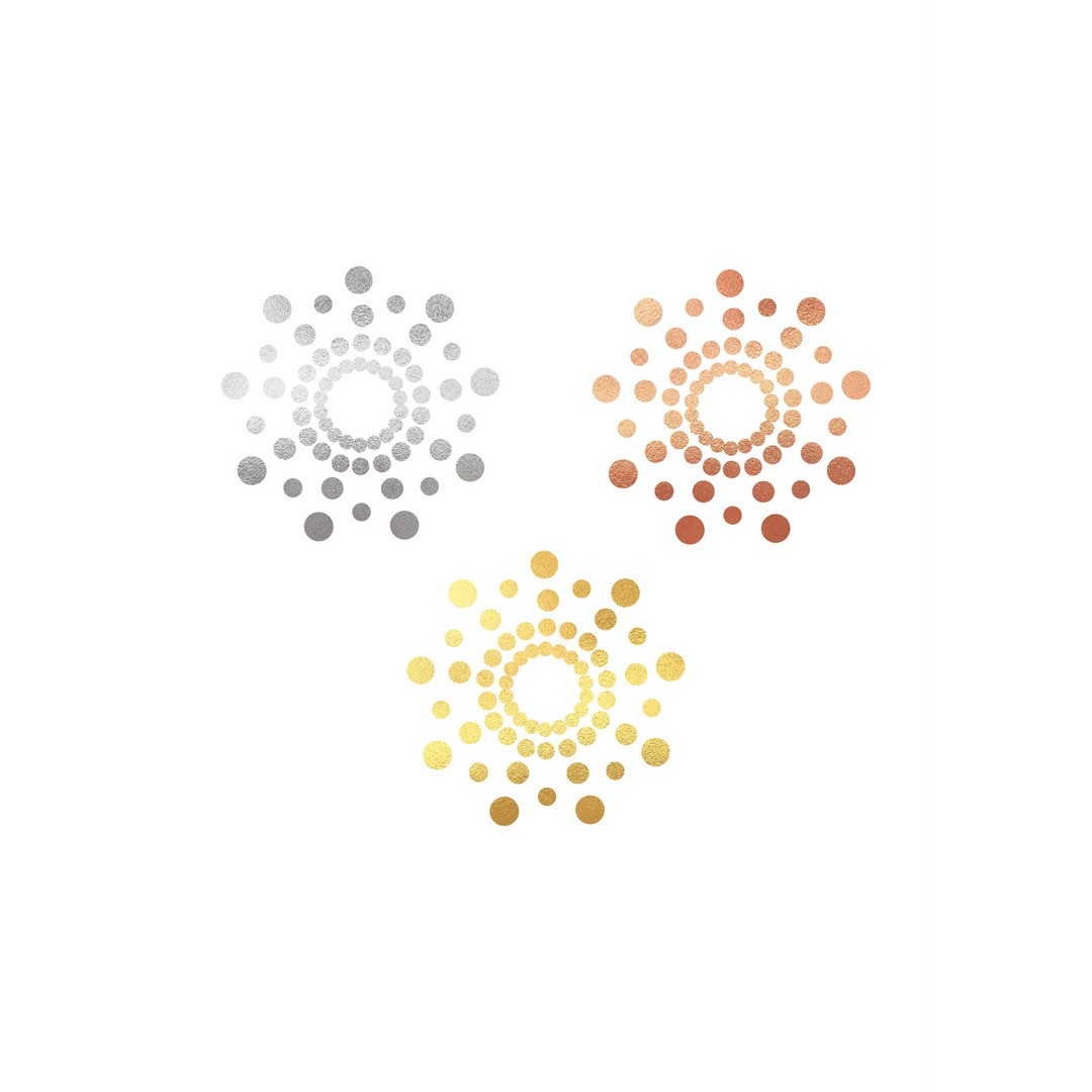 Tatuajes temporales metálicos sensuales, fáciles de aplicar y diseñados para realzar los senos y las curvas con brillo dorado, plateado y cobrizo.