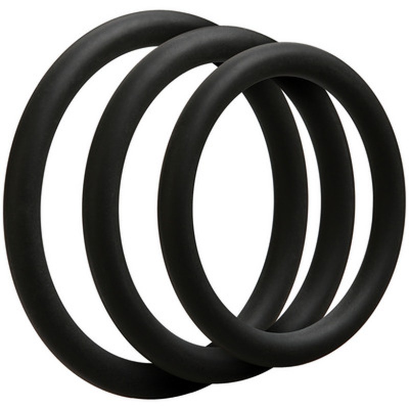 El juego de anillos para el pene OptiMALE Thin C-Ring Set proporciona mayor tamaño y circunferencia, con tres anillos de 40 mm, 45 mm y 50 mm de diámetro.