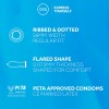 Preservativo EXS estriado y punteado, de látex natural, con extremo en forma de tetina y lubricado con silicona. El preservativo EXS estriado y punteado mide 56 mm de ancho y tiene un cómodo extremo en forma de tetina.