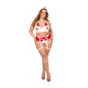 Irresistible disfraz de enfermera con sujetador con aros, tanga de encaje y ligueros integrados. Incluye un accesorio para la cabeza para un look provocativo y seductor.