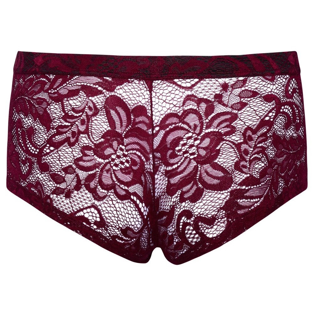 Los shorts realzadores de Svenjoyment están confeccionados en encaje floral rojo oscuro y tienen una cintura elástica recubierta de tela. El material es suave y elástico, lo que garantiza un ajuste extremadamente cómodo.