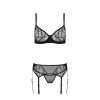 El sujetador con aros proporciona una sujeción impecable al busto, creando una silueta armoniosa, mientras que el liguero realza la cintura de forma delicada y añade sensualidad a la prenda.