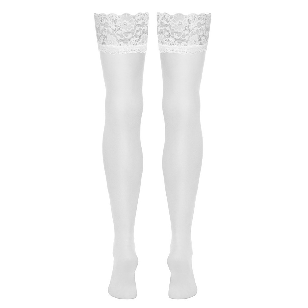 Las medias blancas aterciopeladas de Cottelli LEGWARE tienen un encaje elástico de 9 cm de ancho en la parte superior. 20 deniers. Certificado Oeko-Tex.
