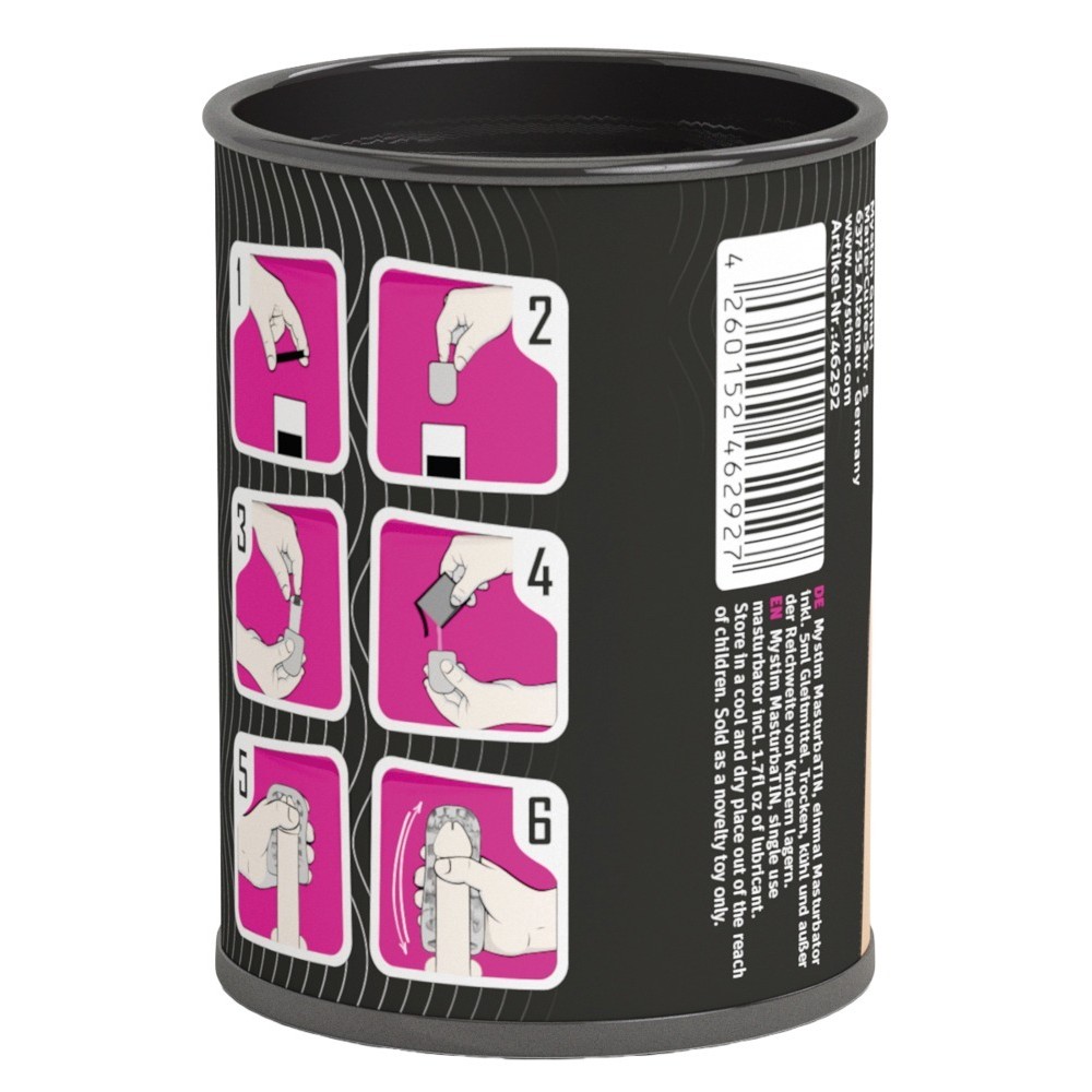 MasturbaTIN Swirl Girl de Mystim es ideal para un masaje intenso del pene durante la masturbación en solitario o en pareja. La suave funda proporciona placer gracias a su textura interior en forma de remolino bien marcado. Se puede apretar firmemente para una estimulación aún más intensa. Es extremadamente suave y elástica, ofreciendo una sensación extremadamente realista. Reutilizable y fácil de limpiar. Presentado en una elegante lata de regalo.