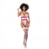Sexy traje de enfermera de punto a rayas con encaje, tanga y gorro, perfecto para seducir.