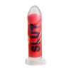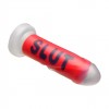 Dildo de silicona premium con eje estriado, ventosa resistente y la palabra SLUT destacada para fantasías atrevidas.
