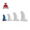Formato realista con glande detallado, parcialmente cubierto por prepucio y bolsa.