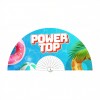 Abanico de poliéster con 64 cm de envergadura, ligero, resistente y elegante.