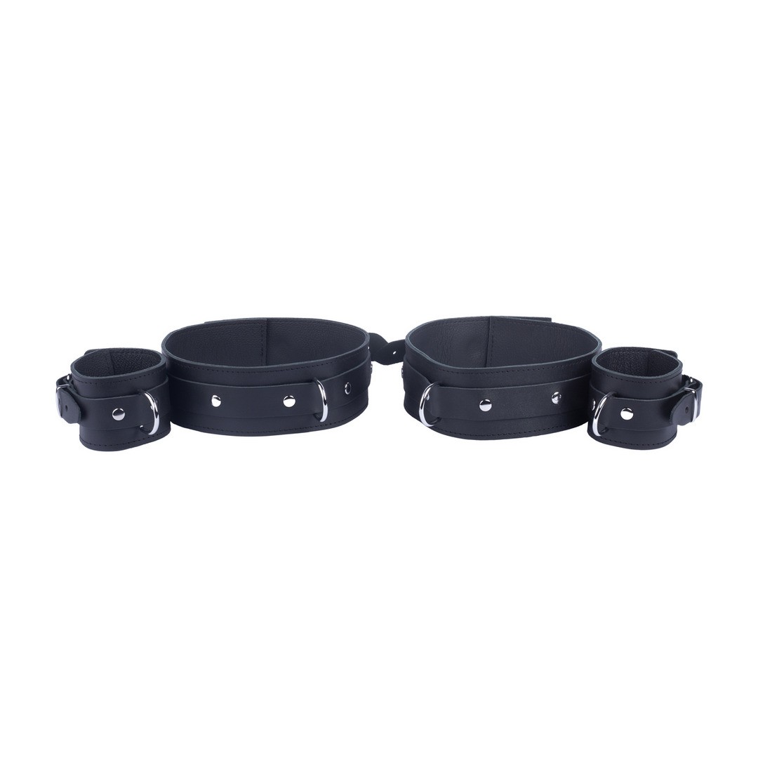 Esposas de cuero diseñadas para inmovilizar los muslos y los tobillos, ofreciendo un control seguro y cómodo.