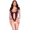 - Elegante body de encaje negro y rojo con estampado floral de rosas