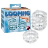 Deux anneaux péniens transparents, idéaux pour des érections fermes et rigides, offrant des rapports sexuels plus intenses et plus durables. Il suffit de mettre le Looping Cock Ring à 2 ou 4 tours et la restriction du flux sanguin maintiendra vos performances au sommet! Convient également pour une utilisation sur les testicules.