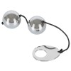 Deux boules lourdes en métal argenté poli, avec anneau de rétraction.