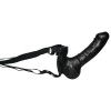 Strap-on Switch de You2Toys en latex souple noir, avec testicules prononcées et veines délicates. Les sangles élastiques et réglables maintiennent le gode fermement en place.