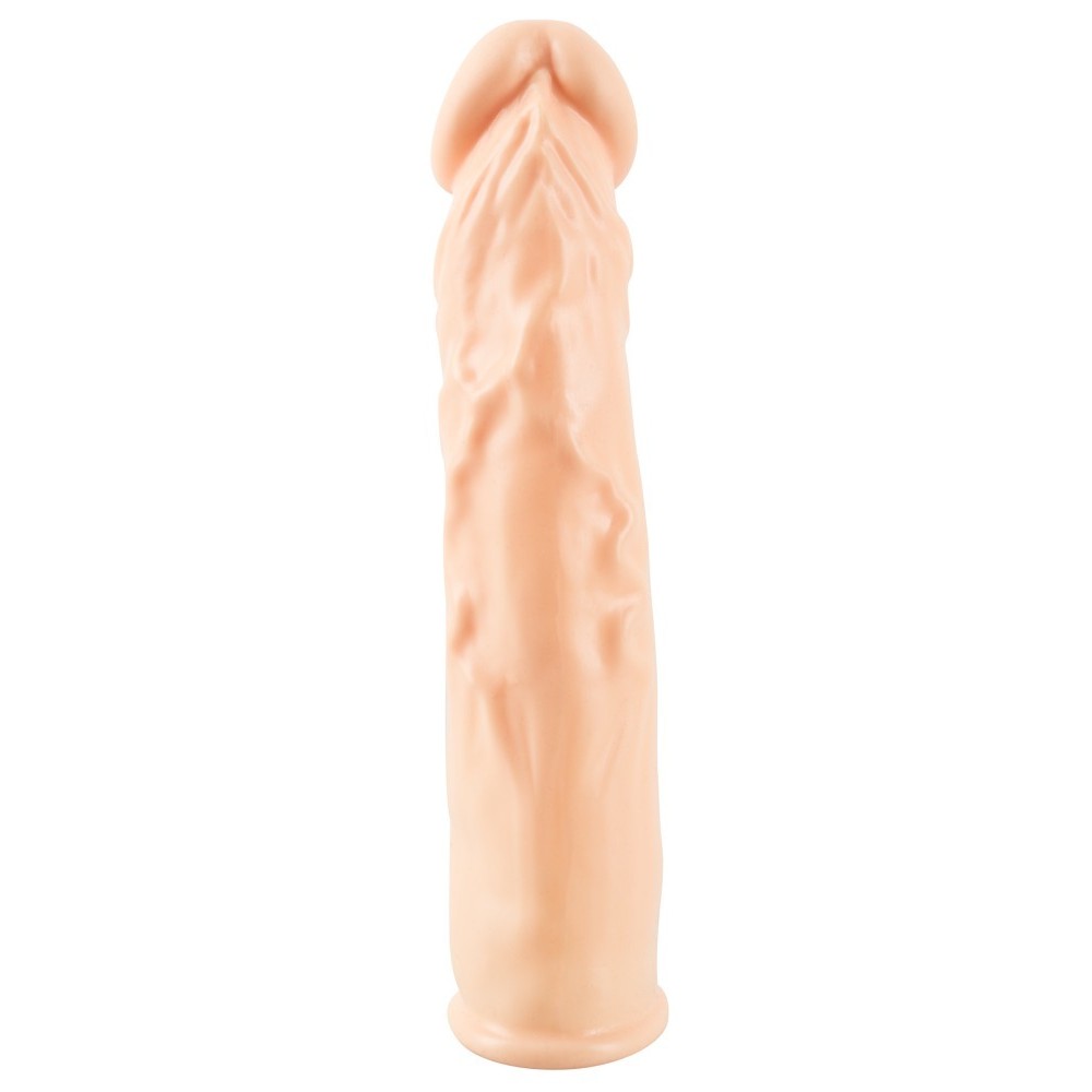 Gaine d'extension pour pénis fabriquée dans un matériau ultra doux, conçue pour augmenter la longueur d'environ 2,5 cm. Elle possède un gland défini et des veines saillantes, avec un intérieur velouté et doux pour plus de confort. L'extenseur est agréablement souple et élastique, s'adaptant facilement au pénis et aux mouvements.