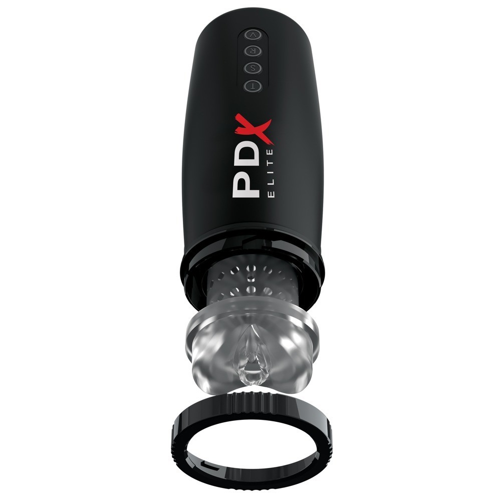 Masturbateur noir avec deux vitesses d'impulsion, cinq modes de vibration et trois modes de succion, contrôlables indépendamment. Le tunnel du plaisir est strié et pointillé pour une stimulation intense.