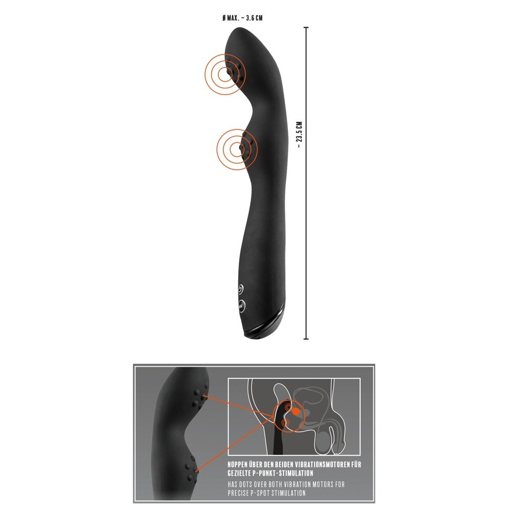 Ce vibrateur noir, avec son extrémité incurvée et élégante, procure une stimulation fantastique du canal anal. Les sept modes de vibration peuvent être facilement contrôlés en appuyant sur un bouton, tandis que l'axe ondulé et les points stratégiques offrent une stimulation supplémentaire et intense, même au point P.