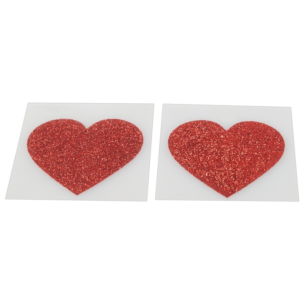 Autocollants de téton en forme de cœur, rouges et étincelants. Il y a des bandes adhésives au dos.