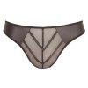 Ce string noir se distingue par une combinaison captivante de matières mates et brillantes et de powernet. Les coutures et les bords sont rehaussés de petits points, tandis que d'élégantes rayures sur les empiècements transparents convergent vers le centre de la poche. Ce string sensuel est très confortable et met irrésistiblement en valeur les fesses grâce à sa matière élastique.