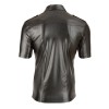 Chemise pour homme en simili cuir noir brillant, légèrement ajustée à la taille pour mettre en valeur les muscles. Des détails tels que la rangée de boutons-pression, les épaulettes et la poche poitrine apportent une touche élégante et affirmée. Idéale à porter avec un jean ou pour un look plus audacieux.