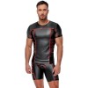 T-shirt moulant à manches courtes de la marque NEK, en noir mat rehaussé de rayures rouges contrastantes. Il présente des empiècements en maille fine transparente sur les côtés et sous les bras. Doux et extensible sur toute sa surface, il garantit un confort optimal et un look saisissant.