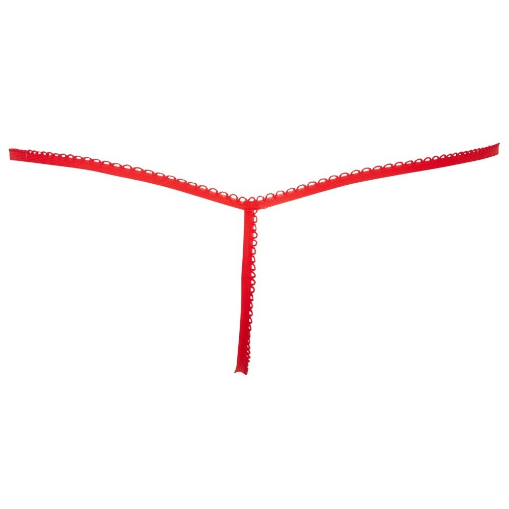 String de Noël en forme de cadeau, au motif raffiné en velours rouge, orné de bandes de satin blanc et d'un nœud élégant. Une pièce irrésistible qui allie douceur et sensualité pour surprendre lors de moments privilégiés.