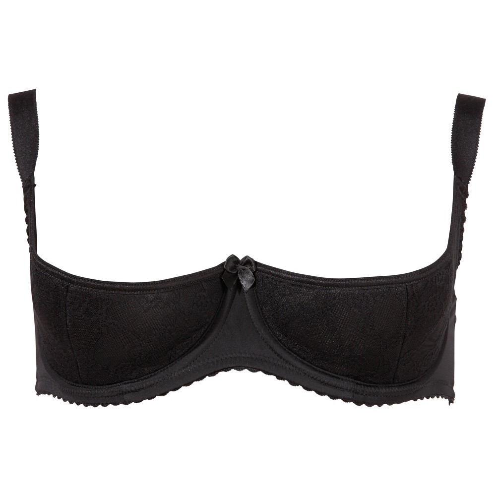 Soutien-gorge noir à armatures, bonnets légèrement rembourrés, renforts latéraux et bretelles extra larges réglables. La matière élastique s'adapte parfaitement au corps et souligne les courbes féminines de manière élégante et séduisante.