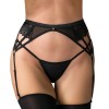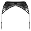 Porte-jarretelles noir transparent Donarella de la marque Obsessive, orné de broderies raffinées des deux côtés. Doux et extensible, il offre un ajustement très confortable. Chaque côté du porte-jarretelles comporte quatre lanières élastiques qui s'assemblent pour former une jarretière réglable. Il est doté d'une fermeture à agrafe à l'arrière et d'un petit élément décoratif à l'avant de la taille.