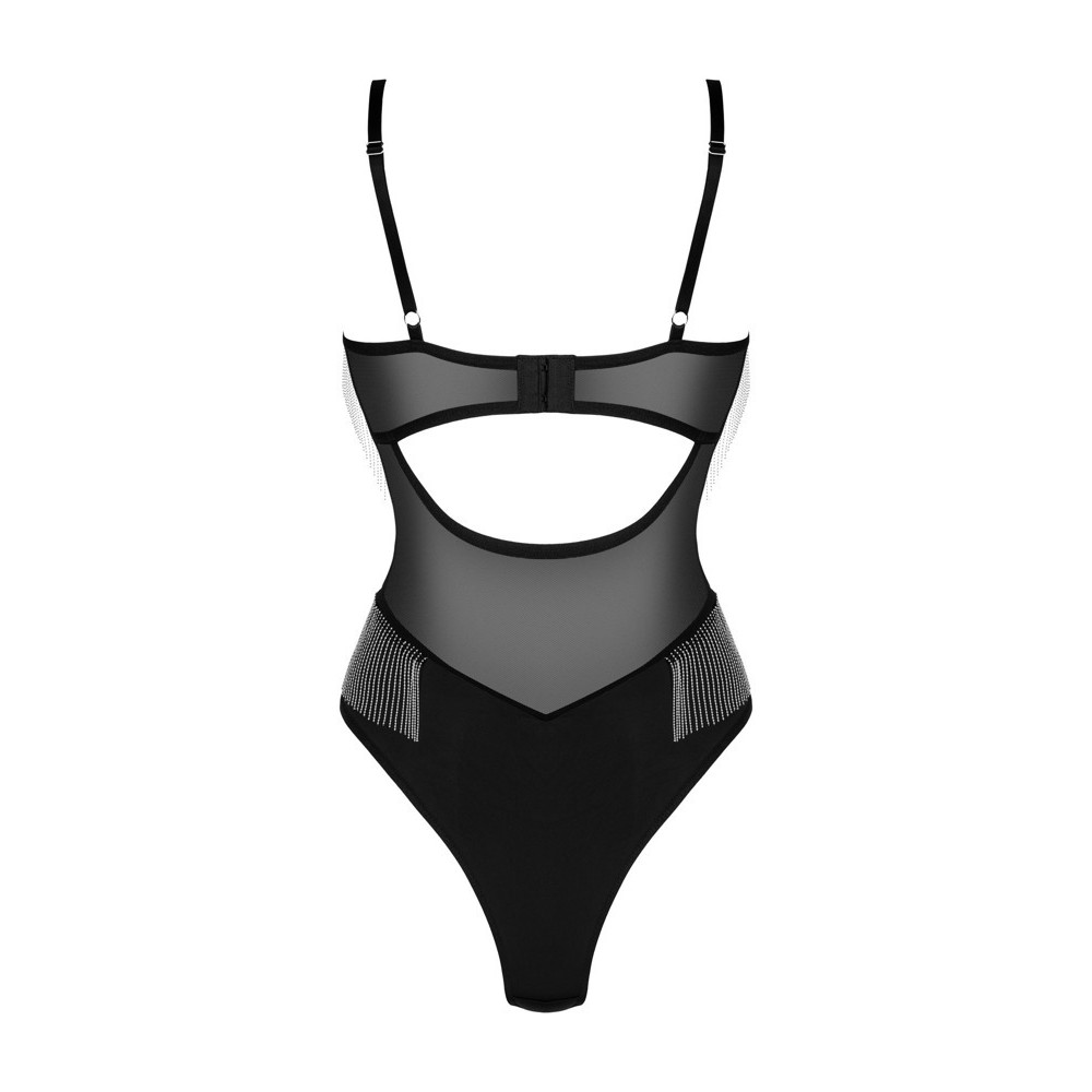 Le body Milladis est destiné aux femmes sûres d'elles qui aiment la lingerie sensuelle et originale. Le soutien-gorge à armatures met en valeur la poitrine et le décolleté, tandis que de délicates rangées de perles argentées sous la poitrine ajoutent une touche de glamour. La maille légèrement translucide éveille l'imagination. Il comprend des bretelles réglables, une fermeture confortable dans le dos et une fermeture réglable entre les jambes, offrant confort et ajustement parfait.