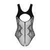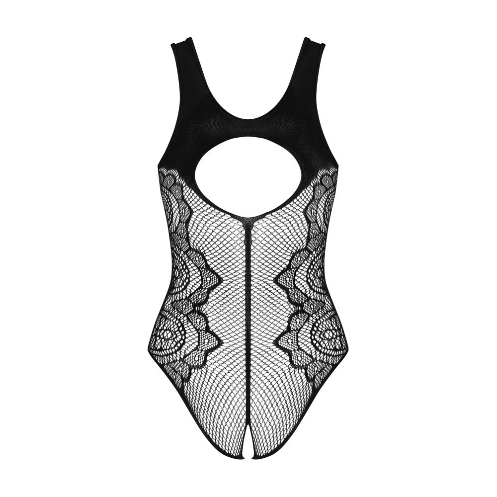 Le body sans entrejambe B335 d'Obsessive, noir et très élastique, est confectionné dans une maille douce et soyeuse qui épouse parfaitement les formes du corps. Les ornements entrelacés sur les côtés soulignent les courbes, tandis que la coupe ajustée, la découpe dans le dos et l'ouverture séduisante à l'entrejambe rendent ce modèle extrêmement provocant.