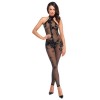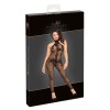 Élégante combinaison catsuit à épaules dénudées de Noir, avec des jambes longues. Entièrement confectionnée en maille fine noire extensible, avec un délicat imprimé velours à motif floral. Il épouse les formes du corps comme une seconde peau, offrant confort et effet séduisant. Il est doté d'une fermeture éclair pratique à 3 voies, partant du col, passant par l'entrejambe, jusqu'au dos.