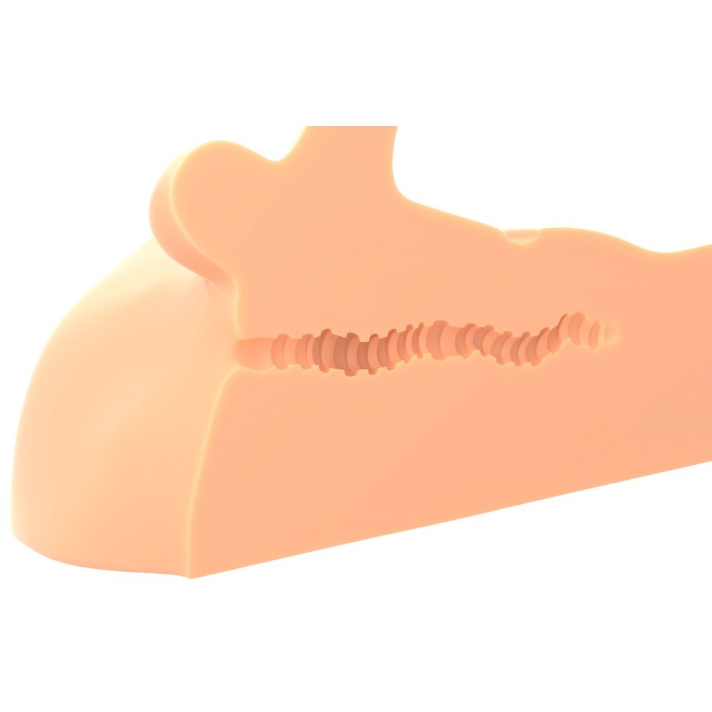 L'orifice anal est également situé dans une position légèrement plus haute que d'habitude, offrant un angle parfait pour une pénétration confortable. Le canal de plaisir, serré mais flexible, présente plusieurs textures stimulantes à l'intérieur, offrant une sensation incroyablement proche de la réalité.