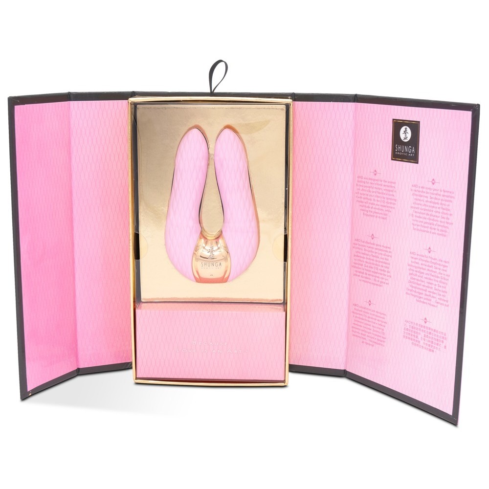 Le double vibromasseur de luxe Aiko de Shunga présente un design sophistiqué et élégant, avec deux doigts vibrants flexibles. Il procure une stimulation simultanée du vagin et du clitoris lors d'une utilisation en solo, ou stimule les zones érogènes telles que les mamelons, les testicules et le pénis lorsqu'il est utilisé en couple. Avec une forme ergonomique parfaite et fabriqué en silicone de qualité médicale, l'Aiko, doux et soyeux, s'adapte harmonieusement au corps et aux mouvements, garantissant un confort et un plaisir maximum.