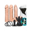 Ensemble Vac-U-Lock Deluxe avec harnais réglable jusqu'à 175 cm, trois godes ULTRASKYN réalistes (18 et 20 cm), plug vibrant rechargeable et produits d'entretien pour une expérience complète et polyvalente.