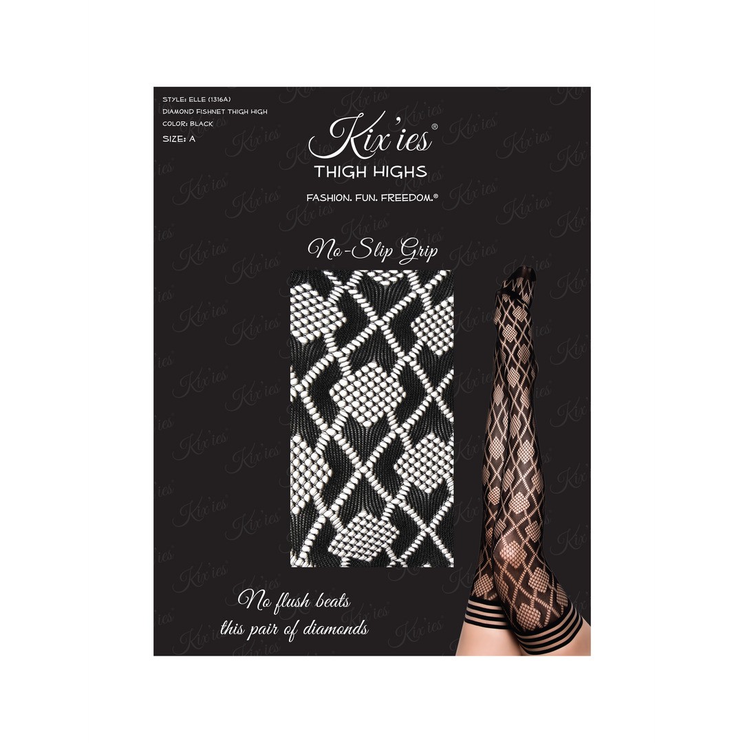 Bas résille à mailles losanges de Kix'ies. Donnez vie à n'importe quel look avec ce design amusant et accrocheur. Les bas cuissards Kix'ies sont conçus pour être portés confortablement toute la journée grâce à leur adhérence antidérapante.