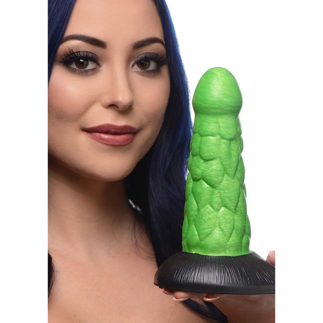 Avec son design épais, écailleux et sa finition vert métallique associée à une base noire, il est parfait pour mettre en scène des scénarios érotiques inspirés des dragons, des reptiles ou des créatures mythiques.