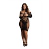 Mini-robe Le Désir à manches longues en maille résille avec découpe sous la poitrine et détail opaque contrasté, sensuelle et élastique.