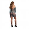 Cette élégante mini-robe à manches longues de Le Désir allie transparence et contraste pour un look sophistiqué et provocant. Le tissu en maille est mis en valeur par une découpe en forme de O sous la poitrine et par des détails opaques contrastés qui soulignent et mettent en valeur les courbes naturelles du corps.