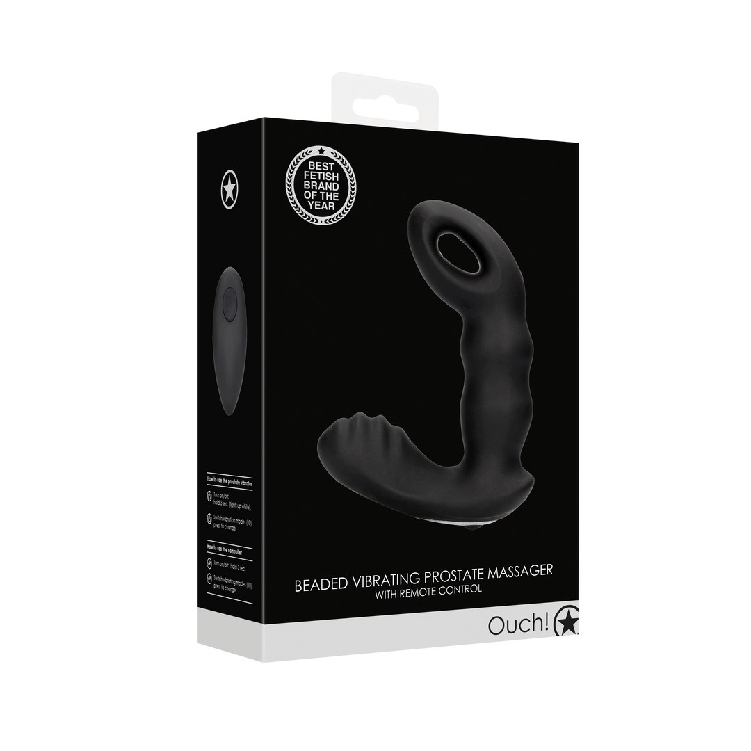 STIMULATEUR POUR PROSTATE AVEC VIBRATION ET COMMANDE BEADED BLACK OUCH!