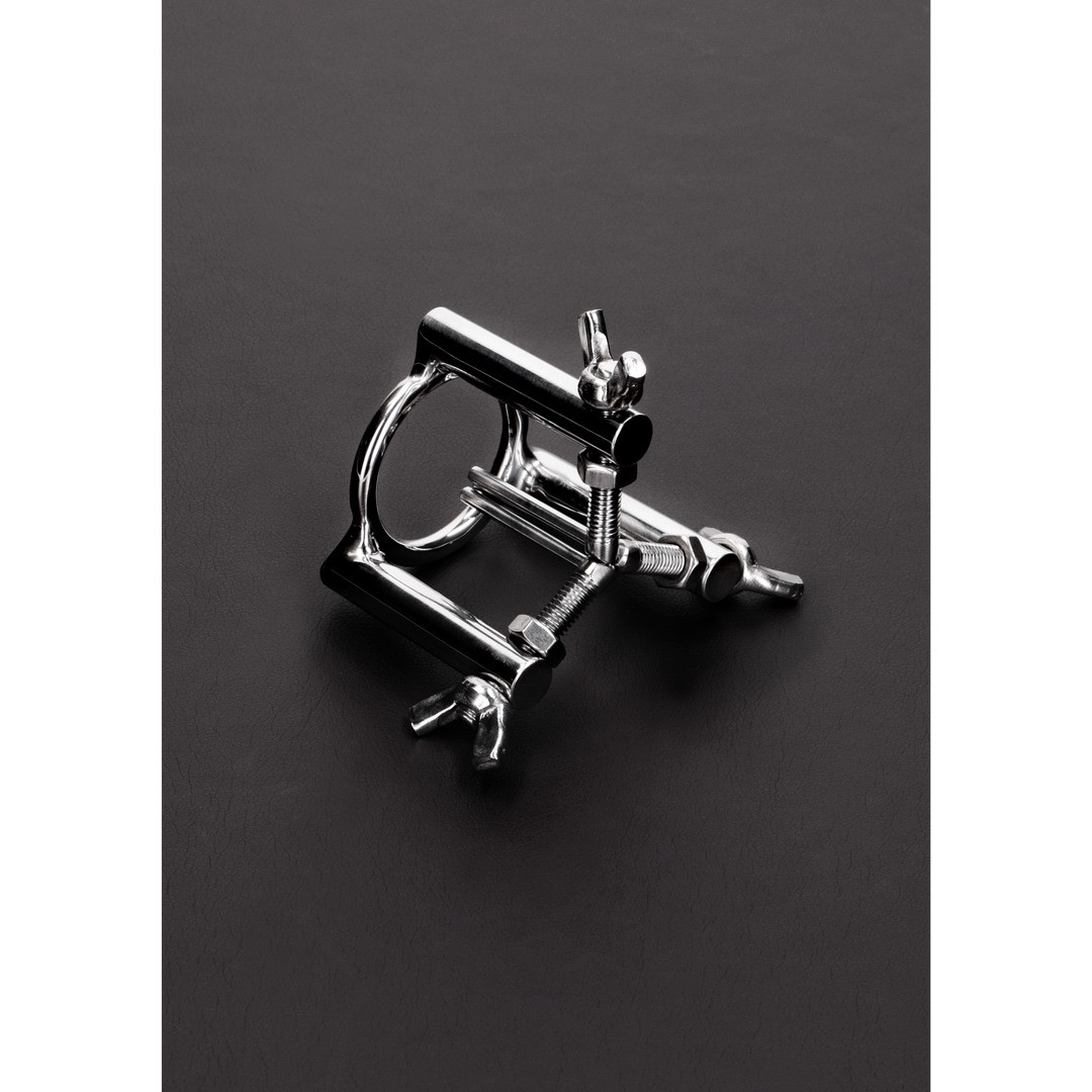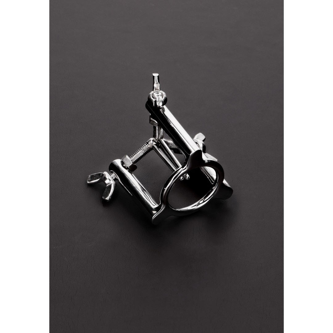 Le extenseur d'urètre en acier inoxydable est composé de trois tiges de 3 mm qui glissent doucement dans l'urètre, fixées à une structure reliée à un anneau de gland de 32 mm de diamètre et 50 mm de hauteur. Il suffit de faire glisser l'anneau au-delà du gland et d'ajuster les trois écrous pour écarter progressivement les parois de l'urètre, ce qui permet d'observer l'intérieur avec précision et contrôle.